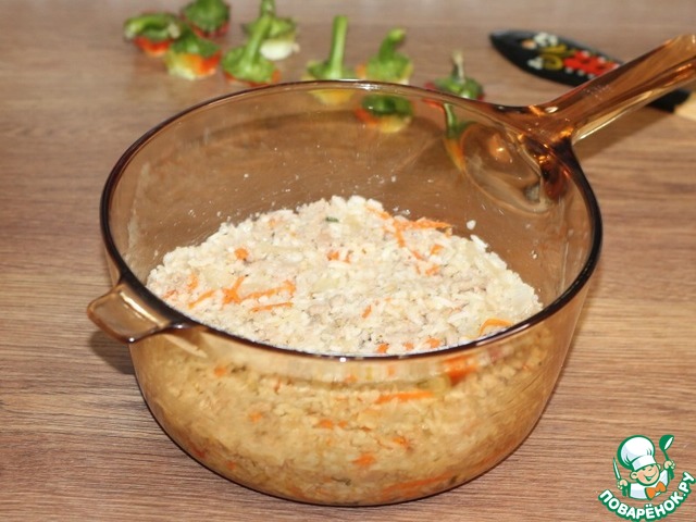 Рецепт интересный, красивый. Но больше использовать такой метод приготовления фарша не буду. Это просто каша с рисом. И всё вываливается и разваливается. Мне не понравилось. Класть фарш в пассеровку больше не буду никогда.