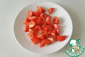 Помидоры порезать и разложить на блюде. Присолить сванской солью.