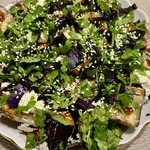 +чеснок рубленый+уксус 6%+чуток аджики Амца+немного воды) , а потом зелень и сверху поджаренный подавленный фундук+кунжут.