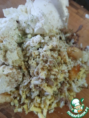 Данную намазку можно подавать на крекерах, на гренками из тёмного или белого хлеба, ей можно фаршировать яйца...