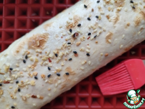 Смазываем яйцом и посыпаем кунжутом (по желанию).