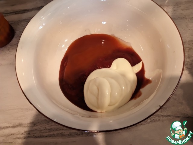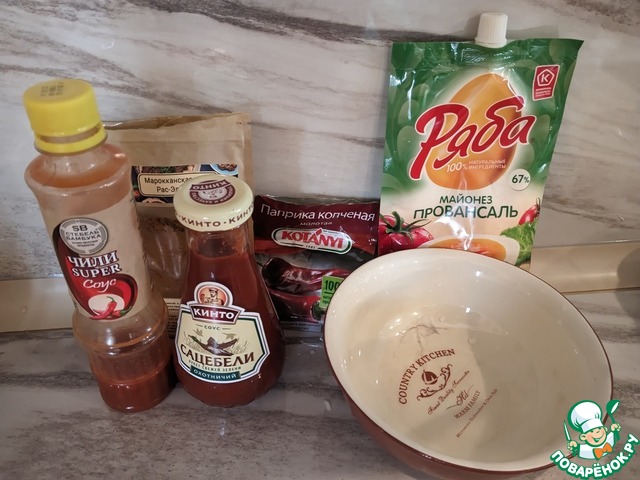 - Соус (смесь соусов: сацебели 2 ст.л. + соус чили 2 ст.л.) — 4 ст. л.