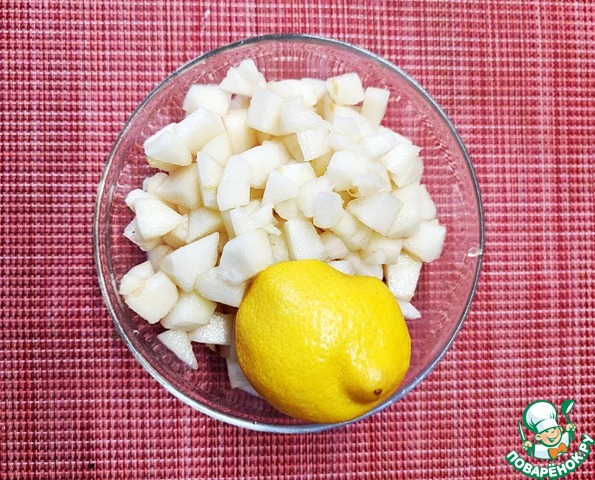 Груши очистить, порезать кубиками, полить лимонным соком.