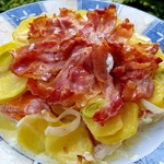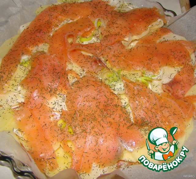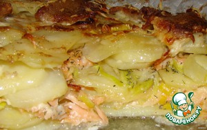 Рецепт «Картофельный гратен с копченой семгой и беконом»: