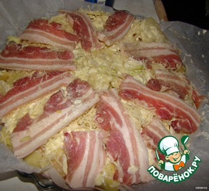 Посыпаем сыром... и выложим пластики бекона сверху...