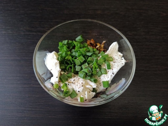 • Добавить творожный сыр, зеленый лук, сок лимона, соль и перец.