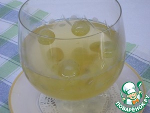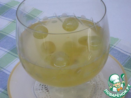 Выложите белый виноград (без косточек) в креманки, залейте соком с желатином и уберите в холодильник на 1часа, как минимум.