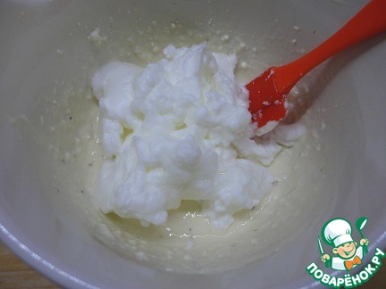 Желтки взбить вместе с сыром, приправить перцем и мускатным орехом.