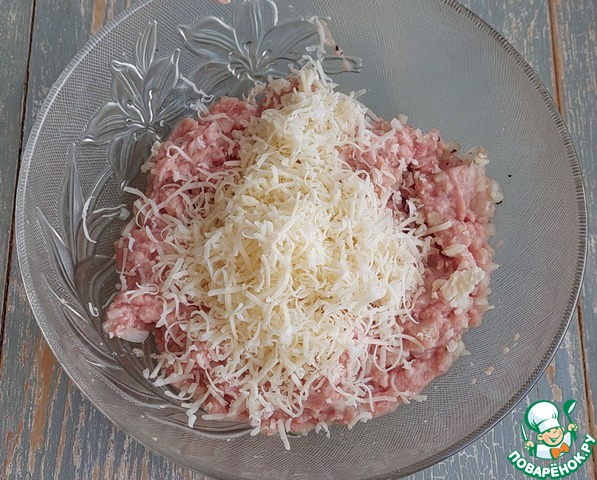 Сыр натереть на мелкой тёрке, перемешать.