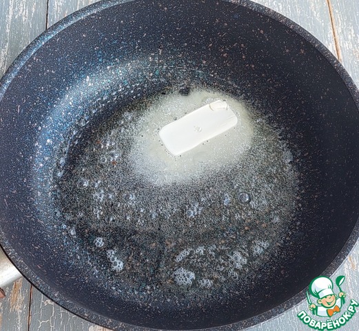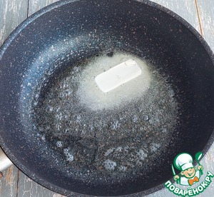 Далее приготовим карамелизированный лук. Для этого растопить сливочное масло на сковороде.