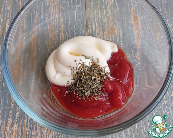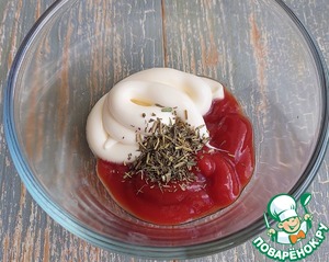 В емкости соединить майонез, кетчуп и прованские травы, перемешать.