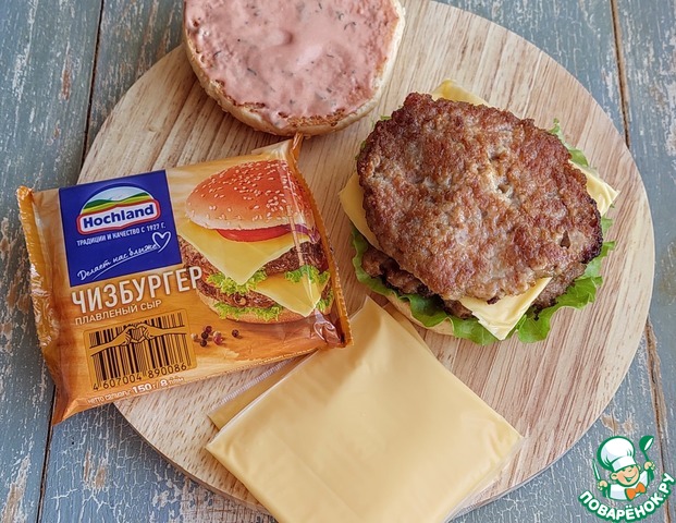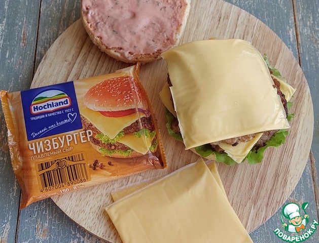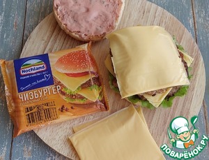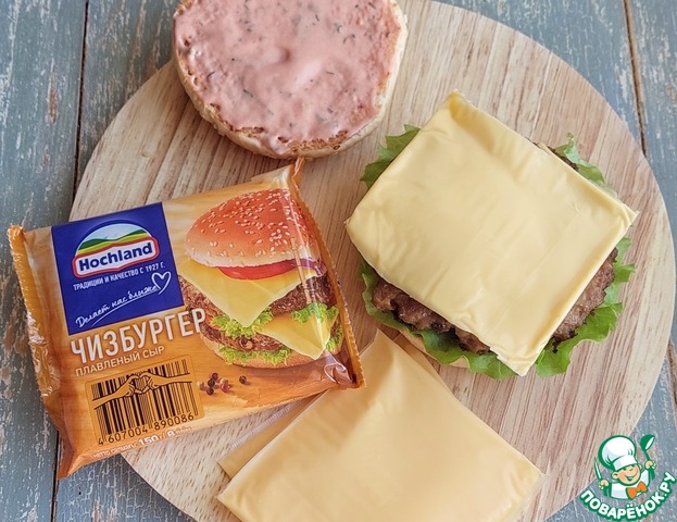 Поверх котлеты положить пластинку плавленого сыра ТМ "Hochland".