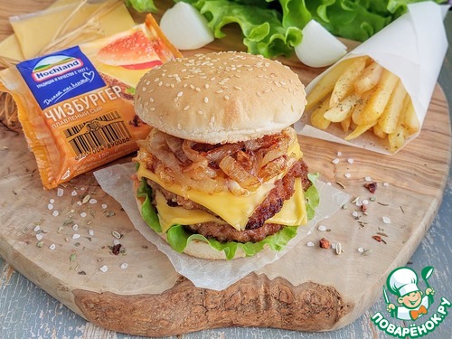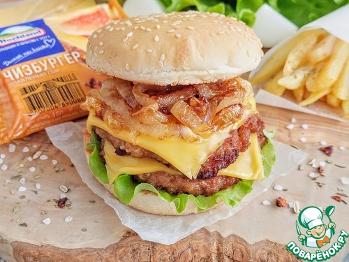 Рецепт «Двойной мясной бургер с карамелизированным луком»: