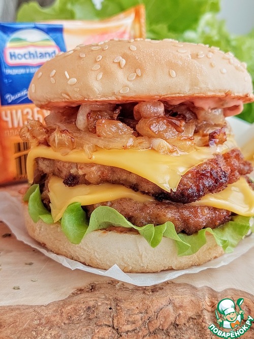 Двойной мясной бургер с карамелизированным луком