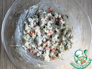 Перемешайте. Посолите и поперчите по вкусу. Начинка готова.