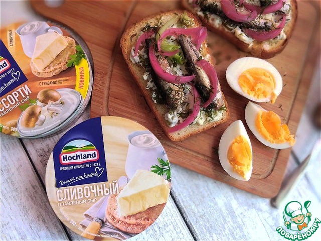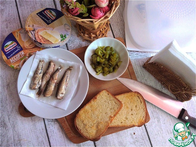 Рецепт «Бутерброд с плавленым сыром и шпротами»: