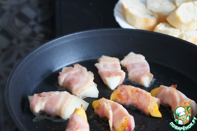 Если хочется чего-то лёгкого и необычного под бокал вина -попробуйте эту закуску. Вкусно, сочно, небанально! Женской половине моих гостей особенно нравятся такие бутерброды. А делать их минут 5. Рекомендую есть сразу, пока фрукты и бекон горячие, а батон хрустит.