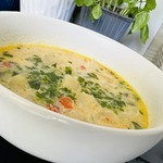 В кипящий суп всыпать мелко нарезанную петрушку, перемешать и снять кастрюлю с огня.