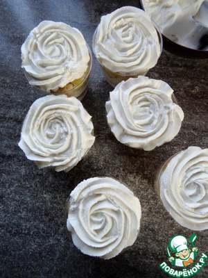 Сверху можно сделать "шапочку крема", отсадив кондитерским мешком с насадкой или же просто ложкой.