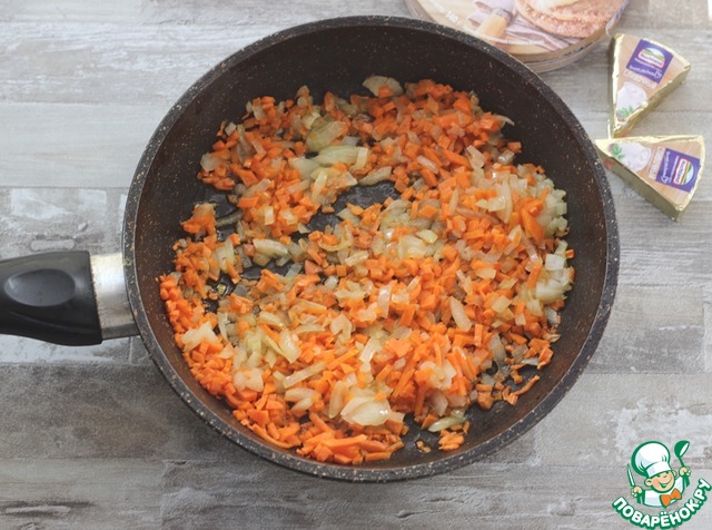 На сковороде разогрейте растительное масло и обжарьте лук и морковь.