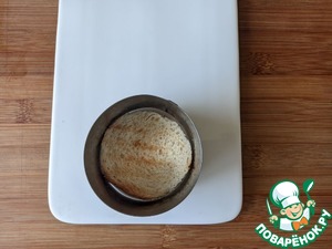 На сервировочное блюдо кладём кулинарное кольцо. На дно кольца кладём подсушенный тост.