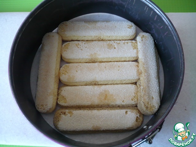 Обмакните печенье савоярди в приготовленный кофе.