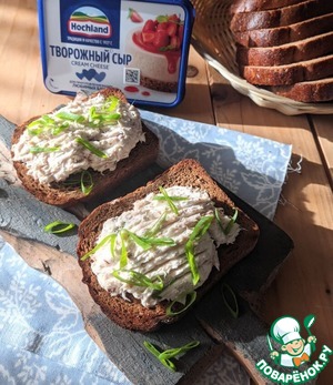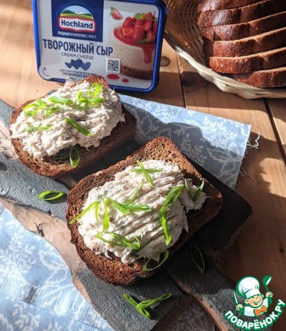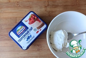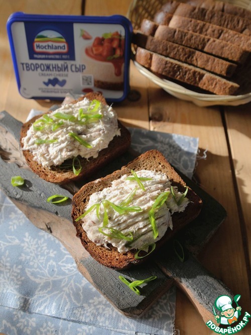 Для приготовления бутерброда берём творожный сыр, у меня - Hochland.
