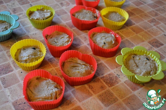 Поставить кексы запекать в разогретую до 180° духовку на 35 минут.
