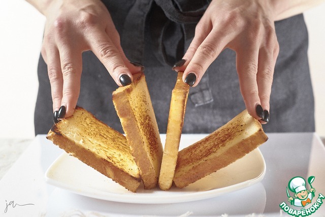 Хлеб обжарить с двух сторон до золотистой корочки.