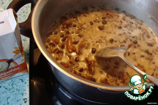 и через пару минут - сливки. Печку отключаем. Соус готов.