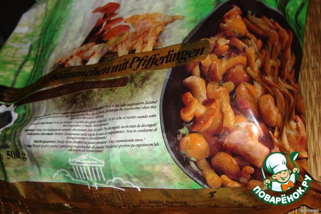 Купила замороженные грибы, а на пакете - рецепт. Я и приготовила, получилось вкусно. Может еще кому понравится?