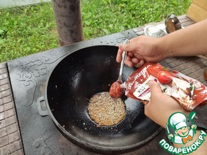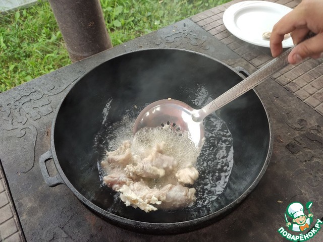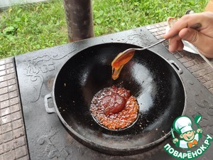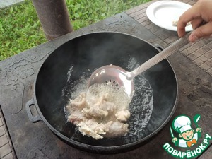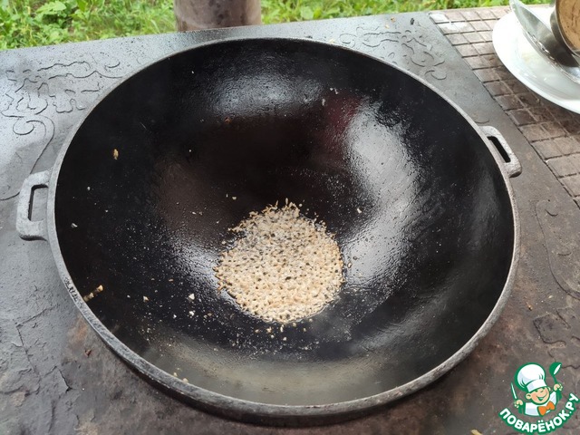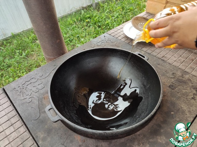 Раскалить масло на сильном огне.