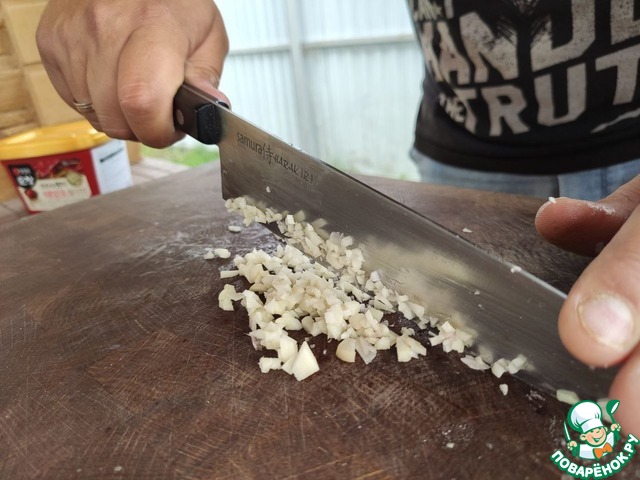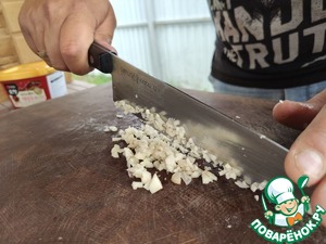 Приготовить соус. Мелко порубить чеснок.