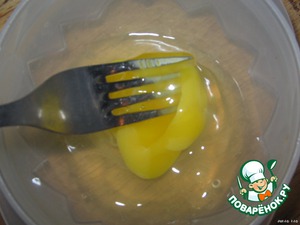 Оставшееся яйцо взбалтываем вилочкой в мисочке. -