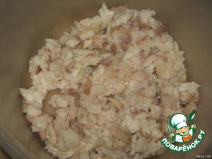 Рыбу остужаем и нарезаем мелко. Можно просто размять. Чем мне нравится морской язык, что в нем нет косточек.