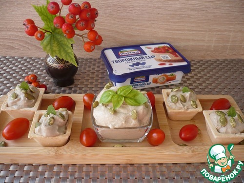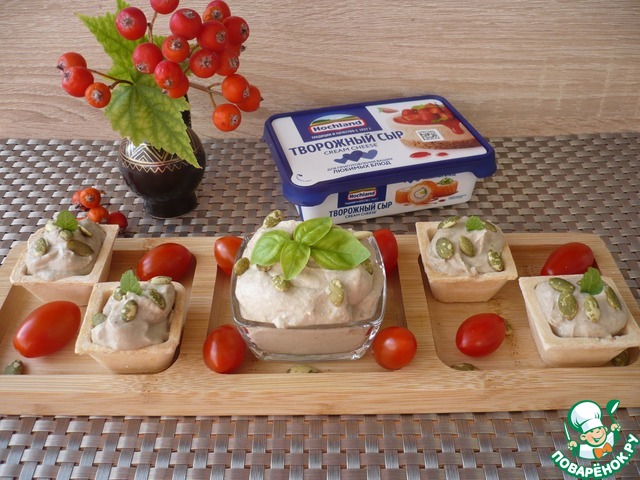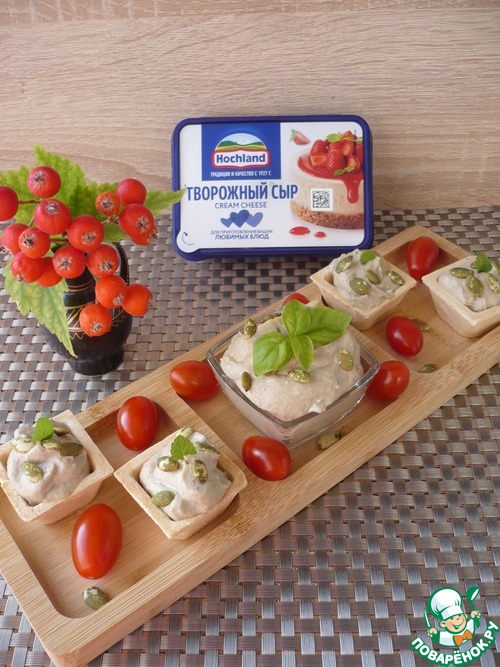 Перед подачей посыпьте тыквенными семечками и выложите в тарталетки.