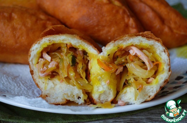 Рецепт «Жареные пирожки с капустой и колбасой»: