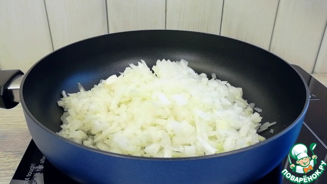 Обжарить лук до легкой золотистости.