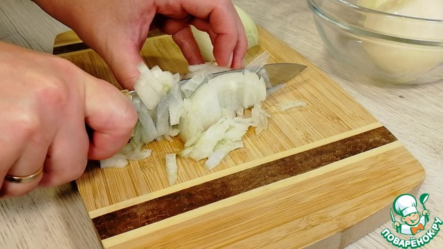 Мелко нарезать лук.