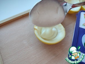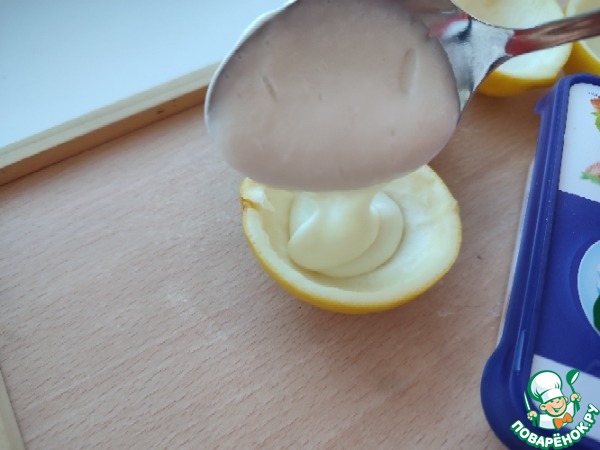 Заполняем наши формы-кожуру. Крем по консистенции, как густая сметана.