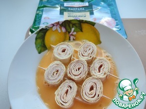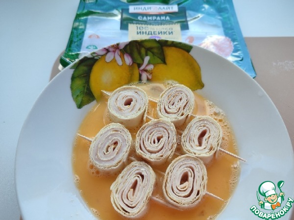 Яйцо взбиваем вилкой и окунаем наши рулетики.