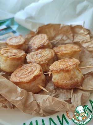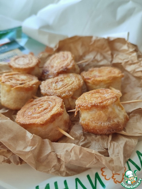 Прекрасный перекус для любимых школьников, студентов и не только)) Помимо того, что это сытно, вкусно, ещё и очень удобно! Рулетики остаются на зубочистках, не стоит переживать где помыть руки до и после приёма пищи (не всегда ведь есть такая возможность). А простота и скорость приготовления - отдельный дополнительный бонус этого рецепта)))