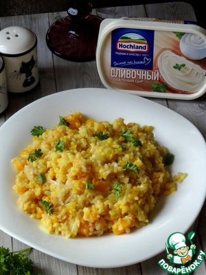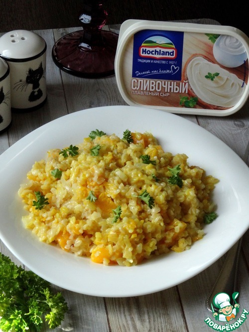 Булгур с тыквой - можно готовить в качестве основного блюда или гарнира. Будет это вкусный обед или ужин - решать вам)). Плавленый сыр добавляет этому блюду определённую изюминку, а именно нежность и сливочный вкус. Блюдо простое в приготовление, но очень вкусное! Разнообразьте своё меню, не пожалеете))!