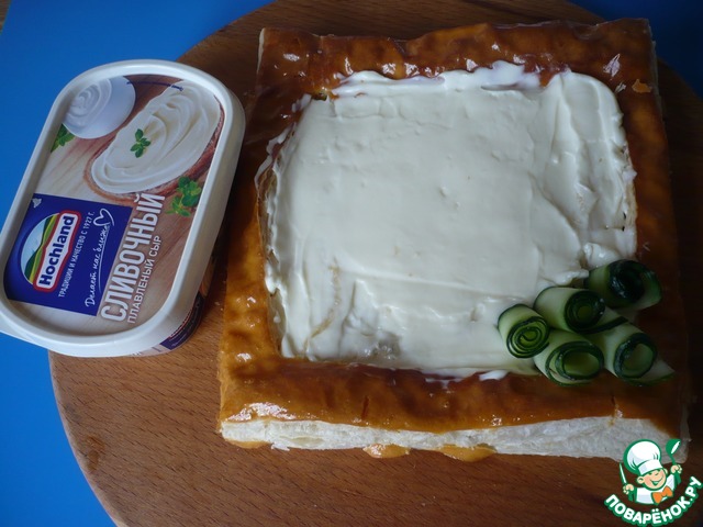 Равномерно распределяем внутри слойки плавленый сливочный сыр ТМ "Хохланд".