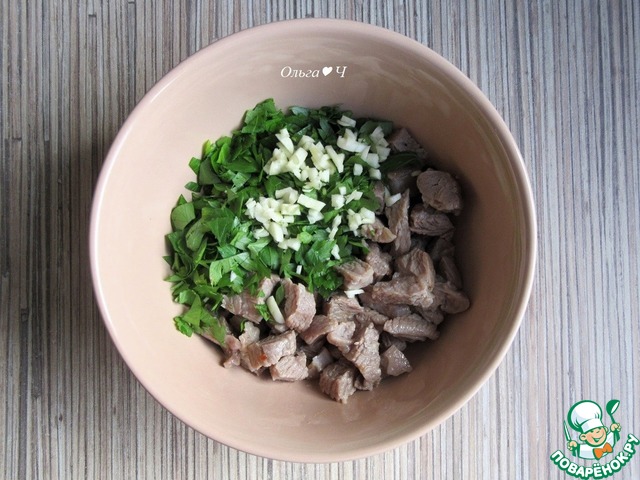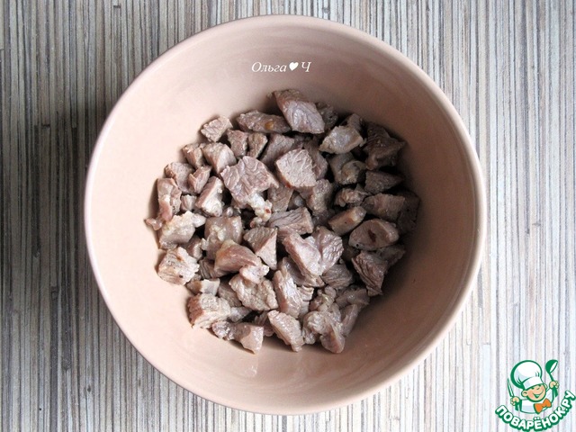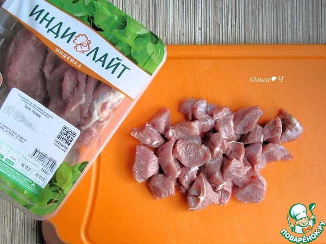 Для начинки филе голени индейки нарежьте небольшими кусочками.
