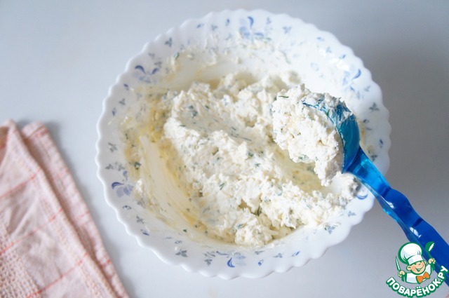 Для рецепта я использовала новинку от Хохланд - творожный сыр в рукаве, он вкусный, нежный и удобный в готовке.