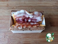 Такой сэндвич можно приготовить и подать обычным способом. Но я предлагаю вам приготовить его для удобства в тарелке-лодочке или такой коробочке, как у меня. Такие тарелки-лодочки можно заказать по интернету, они бывают из бумаги, дерева, пластика.