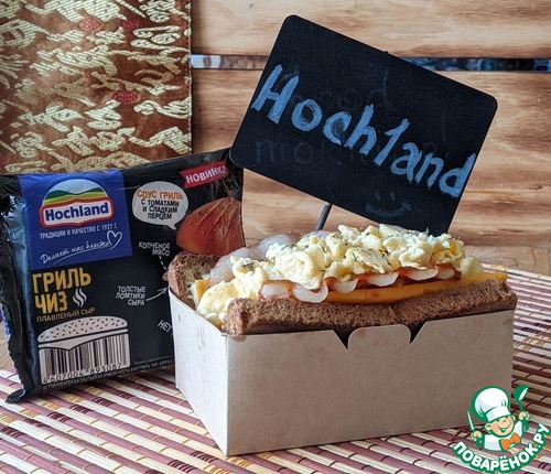 - Сыр плавленый (Сыр плавленный в ломтиках Hochland "Гриль чиз") — 4 ломт.