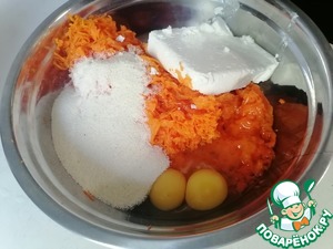 • Сначала сделаем морковные котлеты. Их можно приготовить заранее, а потом взять с собой. Для этого сварить очищенную морковь (у меня это заняло 25 минут), натереть ее на мелкой терке, добавить творог, манную крупу, яйца, посолить по вкусу
