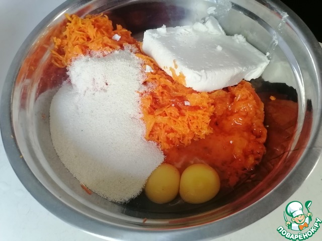 Сначала сделаем морковные котлеты. Их можно приготовить заранее, а потом взять с собой. Для этого сварить очищенную морковь (у меня это заняло 25 минут), натереть ее на мелкой терке, добавить творог, манную крупу, яйца, посолить по вкусу
